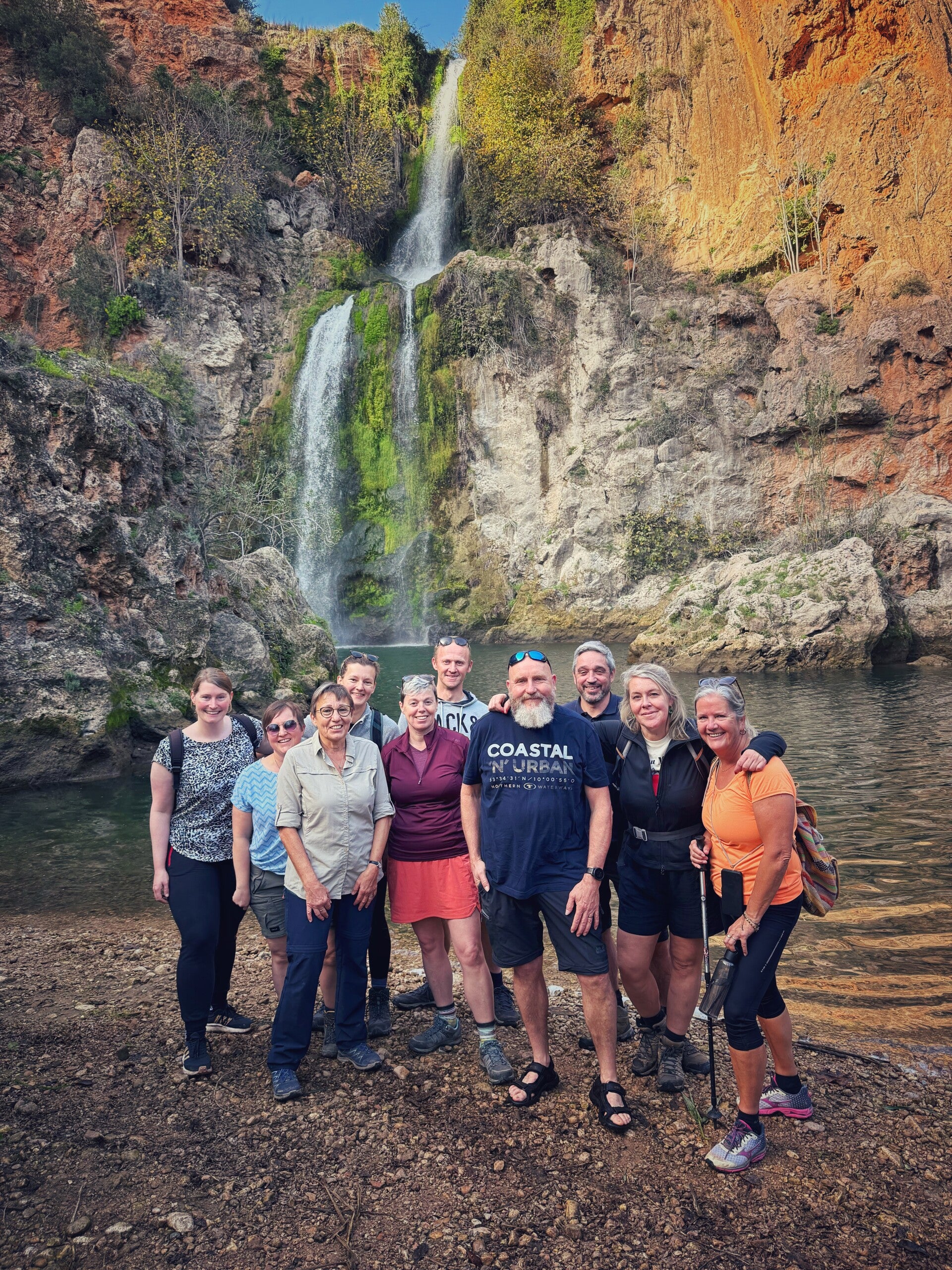 Na twee intensieve wandeldagen begon onze derde dag in een rustiger tempo. We kregen de tijd om heerlijk te ontwaken en te genieten van een uitgebreid ontbijt onder de Spaanse ochtendzon. Daarna sprongen we de bus in, bepakt met lunch, reservekleding, een handdoek en zwemkleding, want vandaag stonden er watervallen op het programma.