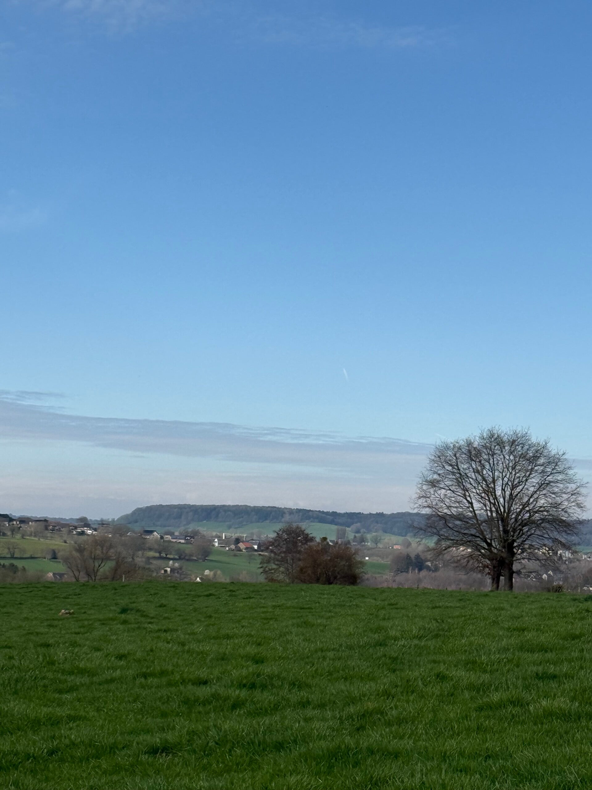 Na deze passage trekken we opnieuw de hoogte in. De route brengt ons via een stukje fietspad terug naar veldwegen die langzaam richting het startpunt leiden. Hier komt het landschap opnieuw volledig open. Brede zichten over de omgeving, golvende heuvels en rustige paden zorgen voor een mooie afsluiter van de wandeling. Stap voor stap keren we terug richting Moresnet-Chapelle, waar we onze tocht begonnen.