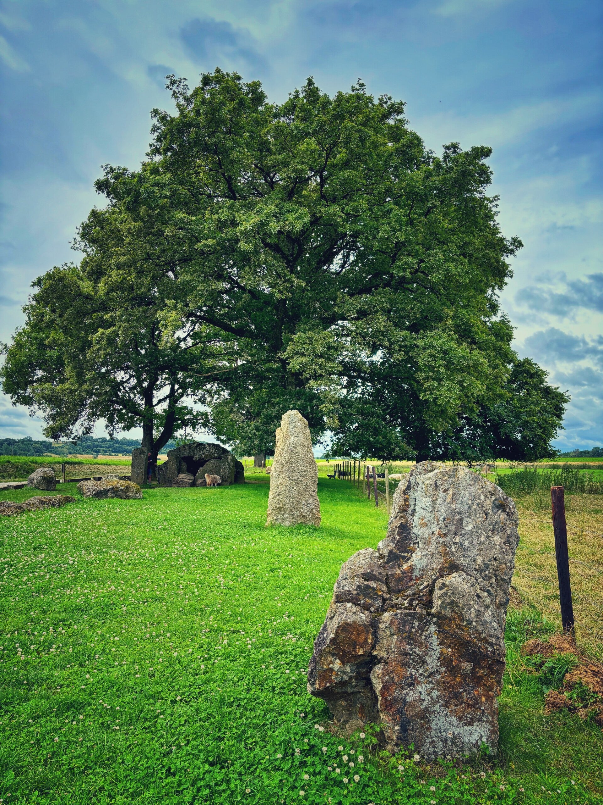 Onze wandeling begint bij de Dolmen van Wéris, een indrukwekkend grafmonument. Hier, aan de rand van het dorp, parkeren we de auto en starten we onze tocht. De route leidt ons langs verschillende menhirs, waaronder de Menhir Danthine en de Dolmen d'Oppagne. Vooral de Dolmen d'Oppagne is bijzonder, gelegen tussen vier monumentale eiken. Dit ganggraf, opgegraven in 1888, is 7,3 meter lang en bestaat uit twintig stenen. Hierachter staan vier opstaande menhirs en één liggende, een plek om even bij stil te staan en te genieten van de historische sfeer.