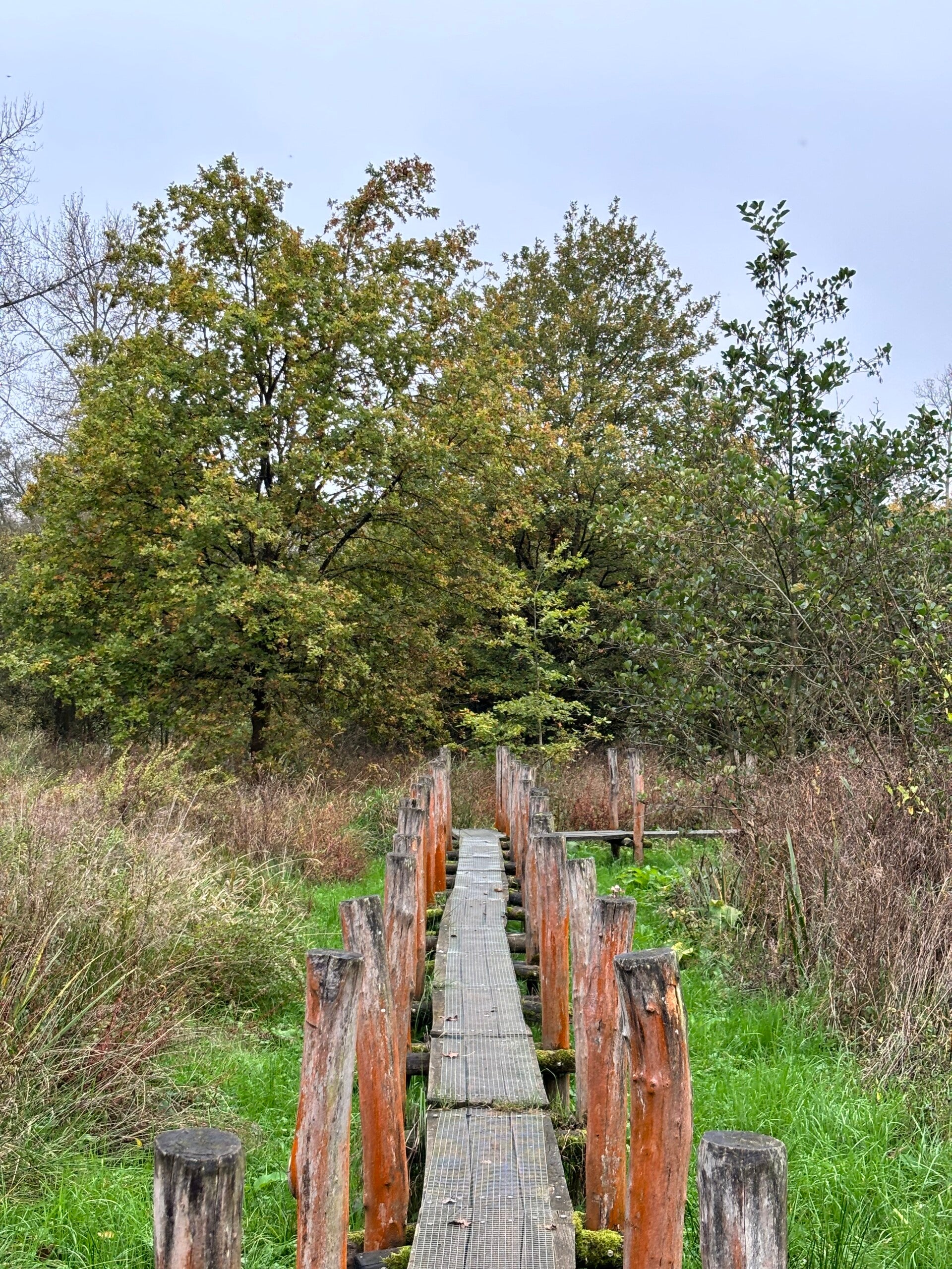 Een leuk stukje onderweg is het pad over houten planken, waar je even dichter bij het water en de natuur komt. Dat soort stukjes geven de wandeling toch net dat beetje extra charme.