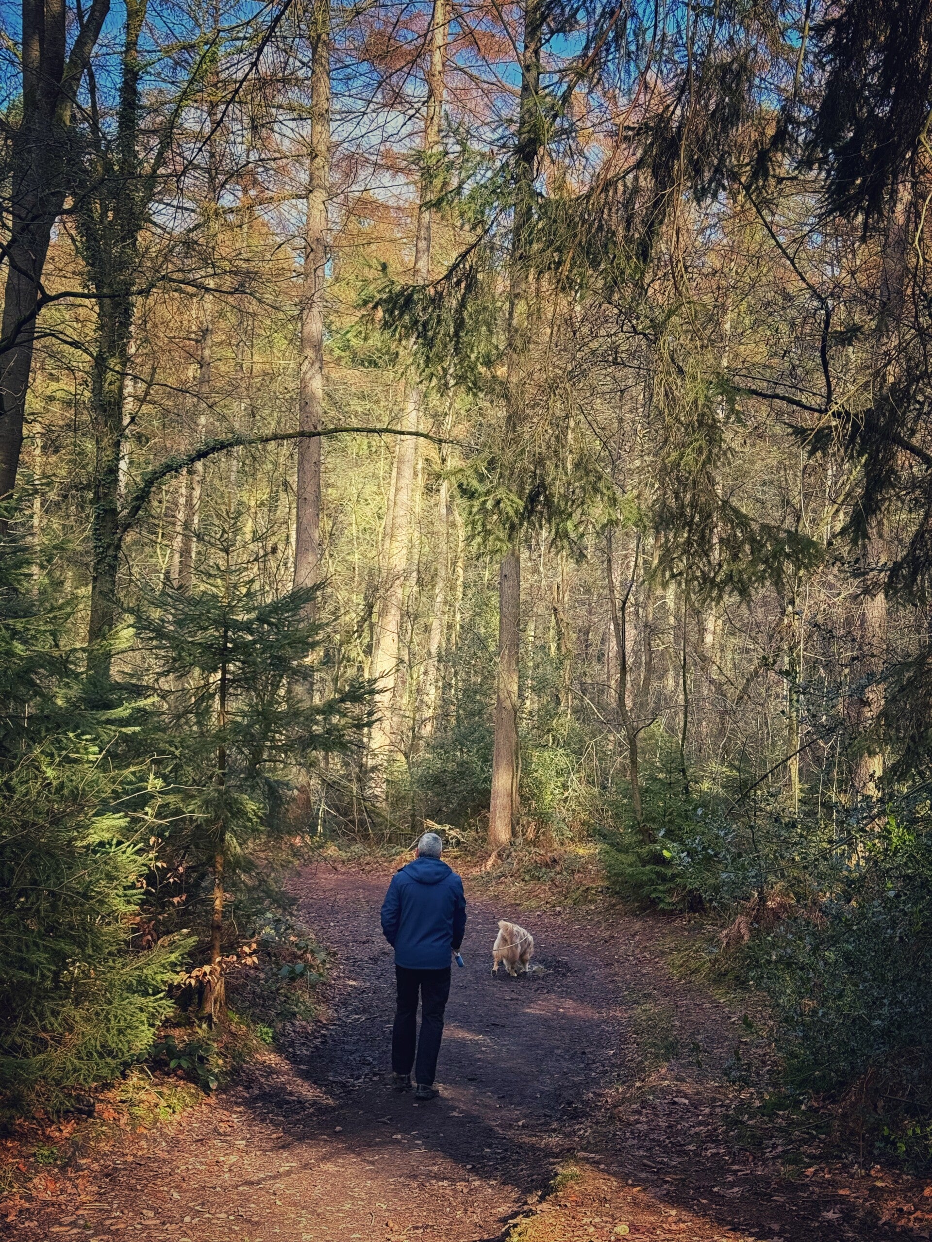 De eerste kilometers lopen door dichte bossen met brede wandelpaden. Het soort paden waar je vanzelf in je ritme komt. Toch was er één klein minpuntje onderweg: bij verschillende kruispunten was het niet altijd duidelijk welke kant we moesten volgen. De bewegwijzering was soms wat schaars of moeilijk te vinden. Dus ja, regelmatig ging de kaart opnieuw open en werd ook de Komoot-app er even bij gehaald om zeker te zijn dat we nog op de juiste route zaten. Gelukkig hoort dat ook een beetje bij wandelen.