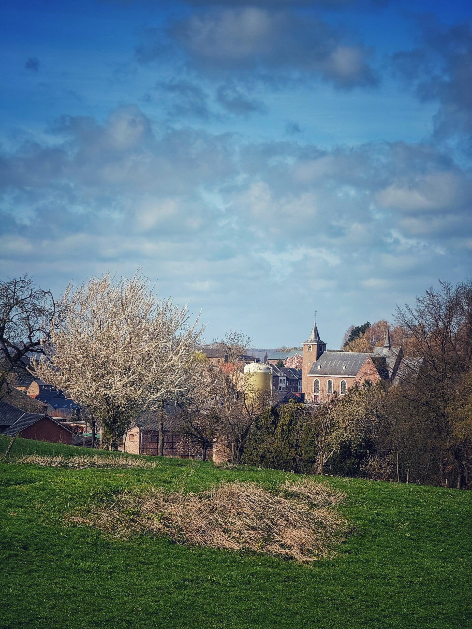 De route bracht ons over smalle paadjes tussen hoge struiken, langs weides en open velden en regelmatig ook licht omhoog richting de heuveltoppen. Het is typisch voor deze regio: nooit echt vlak, maar ook nooit extreem zwaar. Net genoeg hoogteverschil om het wandelen interessant te houden. Onderweg wisten we soms niet waar eerst te kijken. Links heuvels, rechts weilanden, en overal dat typische Zuid-Limburgse landschap dat zoveel mensen aantrekt.